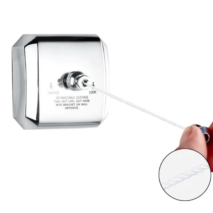 Uscator de rufe retractabil si telescopic cu prindere de perete, lungime franghie 2.8m, sistem montare inclus si 2 optiuni cu/fara gauri, otel inoxidabil, patrat