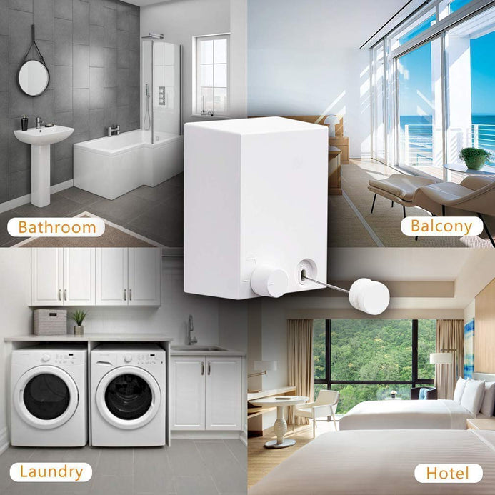 Organizati-va spatiul cu stil si eficienta: transformati modul in care va organizati uscarea hainelor cu uscatorul de rufe retractabil si telescopic cu prindere de perete, lungime franghie 4.2m, sistem montare inclus si 2 optiuni: cu/fara gauri. Alegeti eficienta, durabilitatea si stilul in orice spatiu!