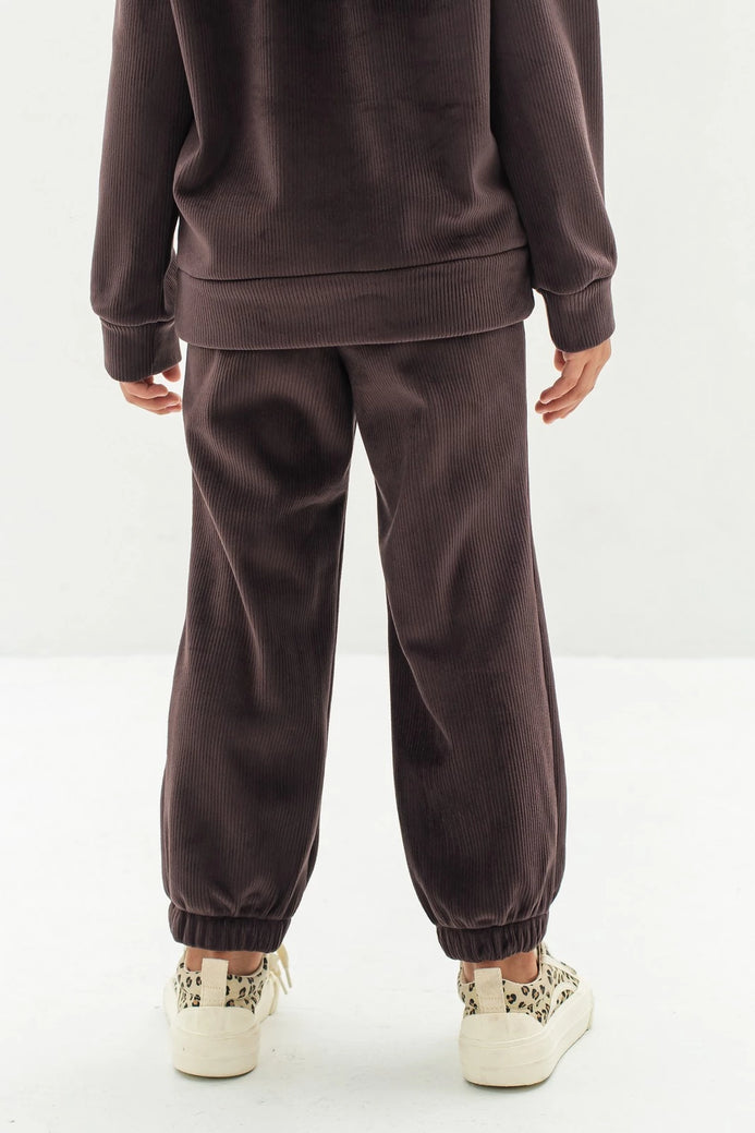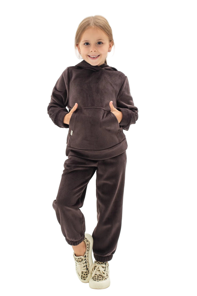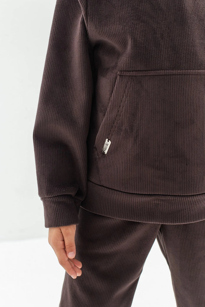 BRYN - Trening din catifea reiata cu hanorac si pantaloni, maro inchis