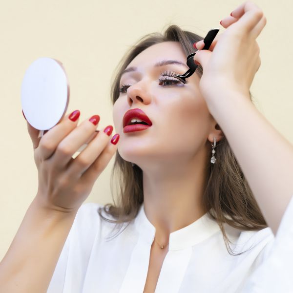 3. Desprinde usor din cutie banda de gene si cuprinde-le cu aplicatorul 4.Asezati genele false pe linia de tus trasata.