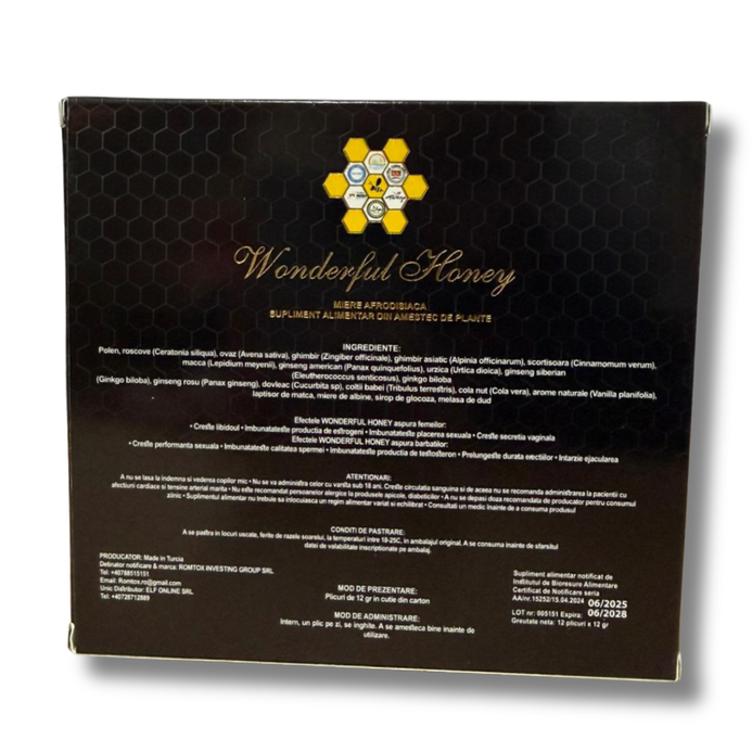 Wonderful Honey Miere Afrodisiac Naturala, Potenta Barbati & Libido Femei, Supliment Natural pentru Performanta Sexuala, 12 plicuri x 12 gr