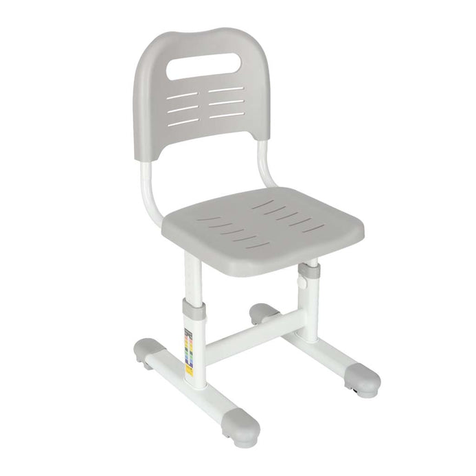 Blatul si scaunul pot fi ajustate in inaltime pe masura ce copilul creste, iar inclinarea blatului pana la 55° permite utilizarea pentru desen si scriere confortabila. Lampa LED cu 3 moduri de lumina (calda, rece, mixta) ofera vizibilitate optima in orice moment al zilei. Cu un design elegant in nuante de gri si alb, biroul include sertar incapator, suport pentru carti, suport pentru pahar si carlig lateral pentru ghiozdan. Materialele sunt sigure, durabile si certificate CE.