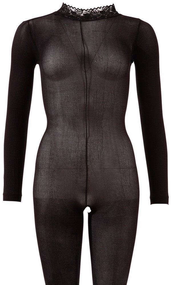 Bodystocking transparent - catsuit provocator din plasă fină și model clasic M/L, negru