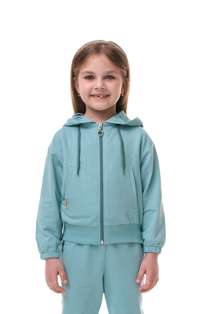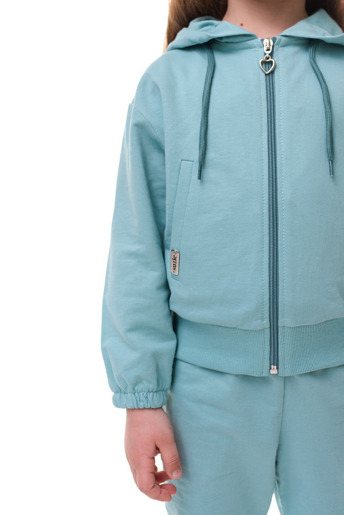 MAIRI - Hanorac din bumbac cu fermoar si buzunare, turcoaz