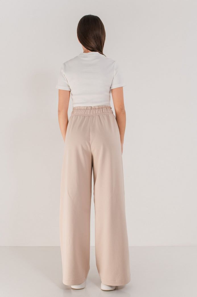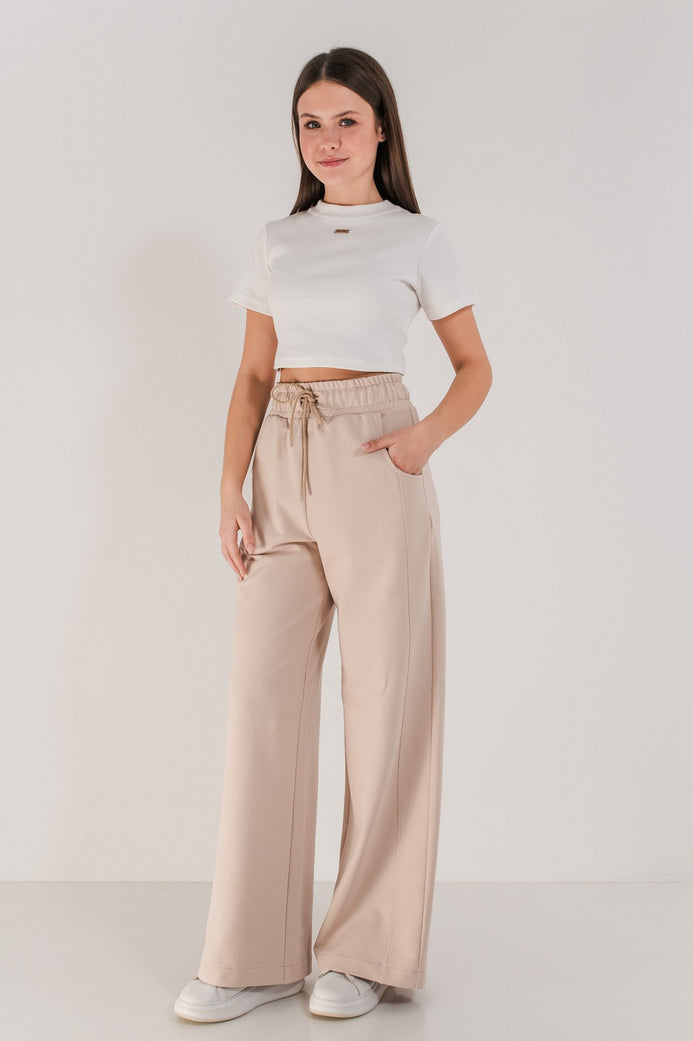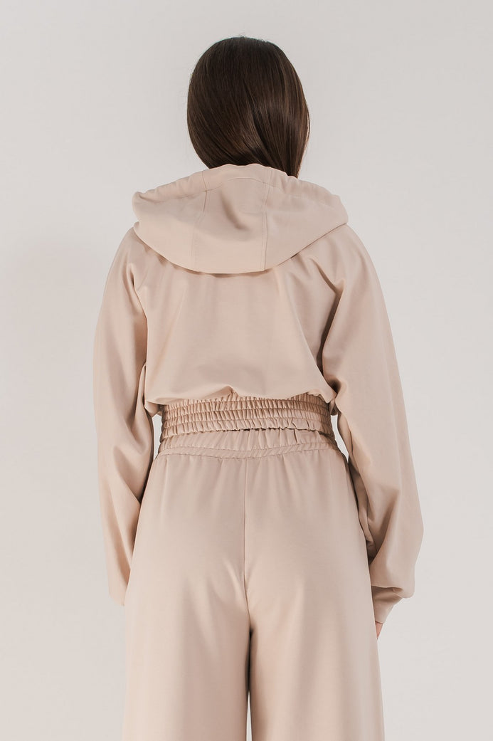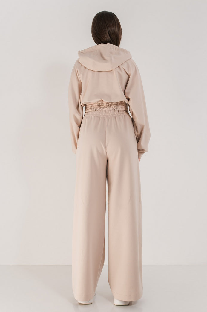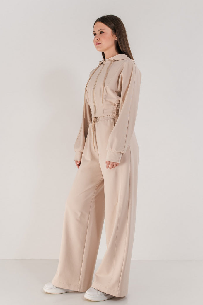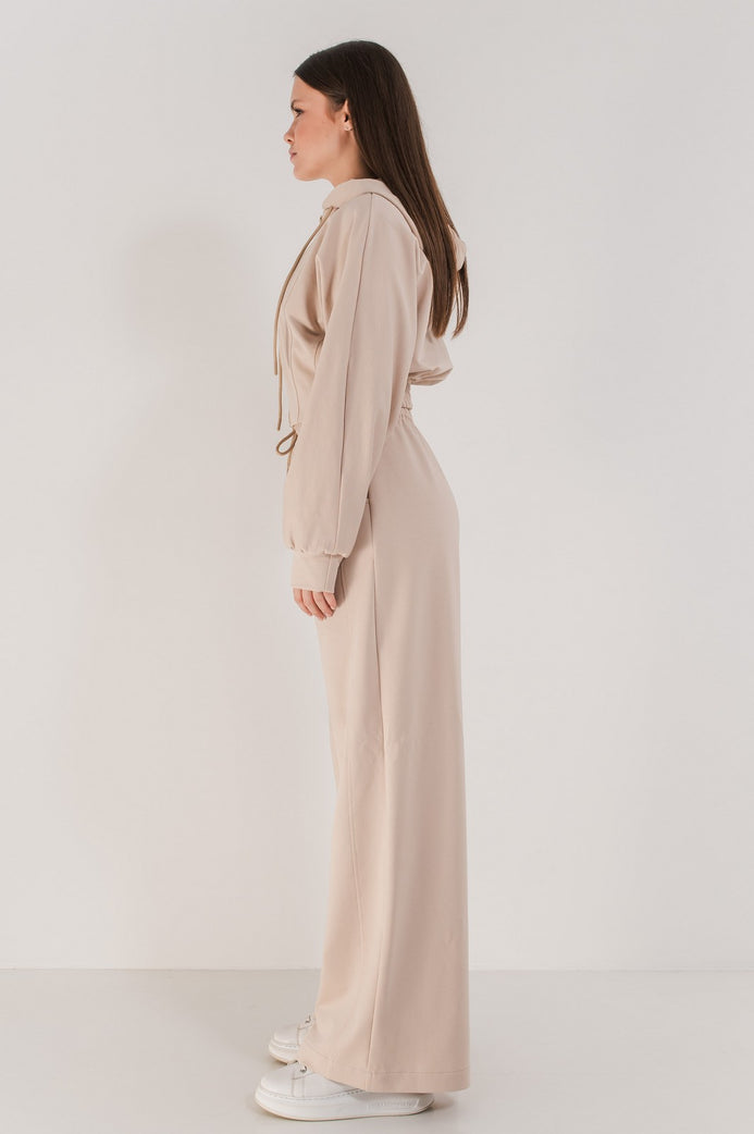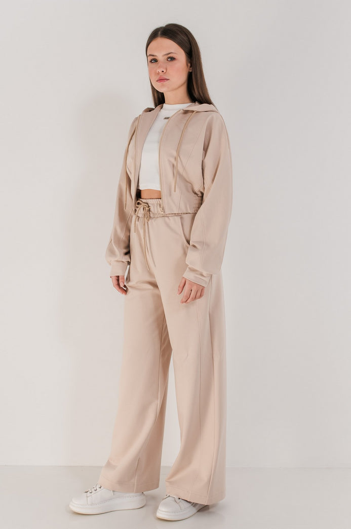 REINA - Trening din bumbac premium cu hanorac si pantaloni evazati, bej