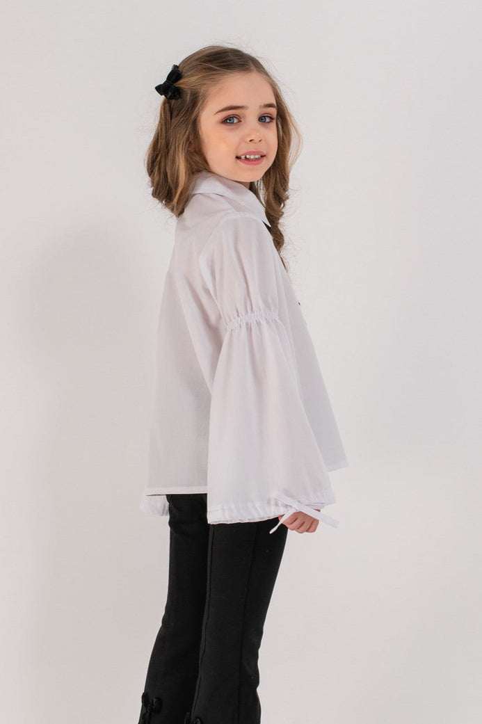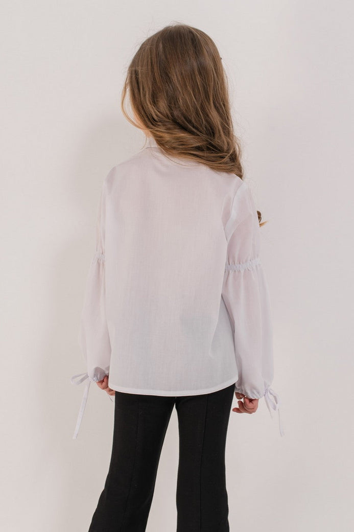 Bluza alba din bumbac cu broderie traditionala si maneci evazate, perfecta pentru uniforme scolare si evenimente festive.