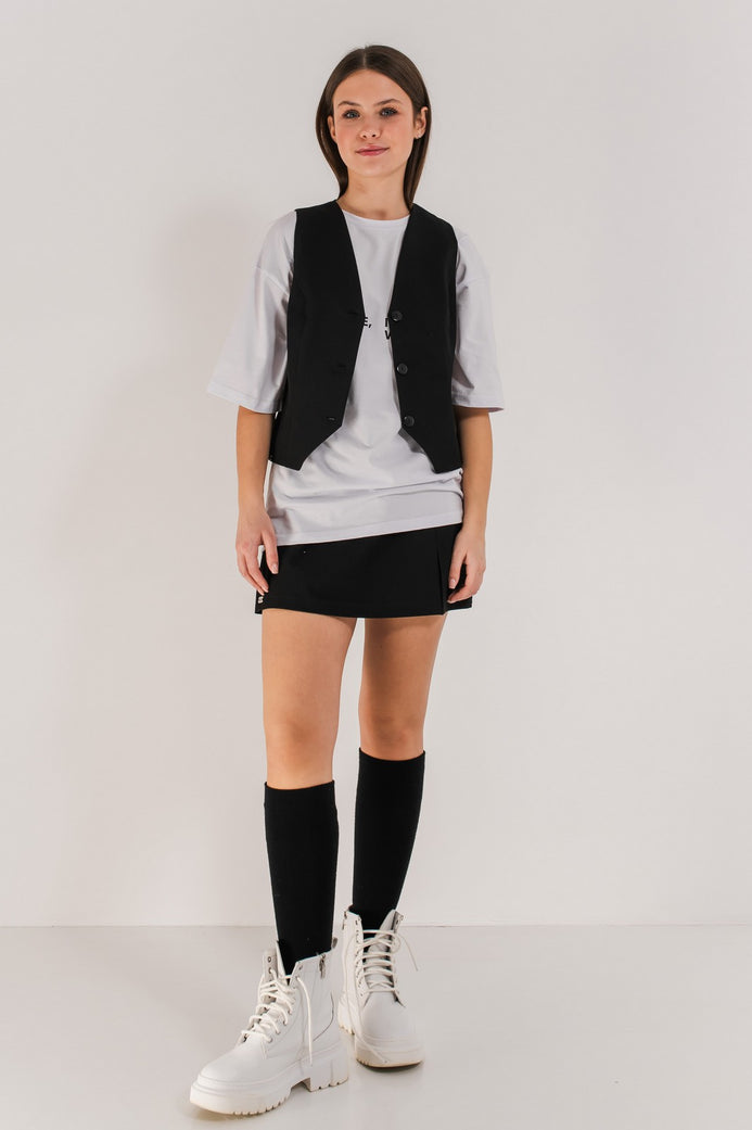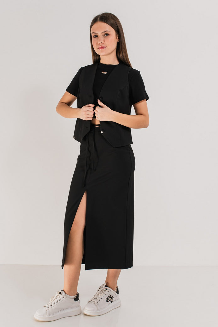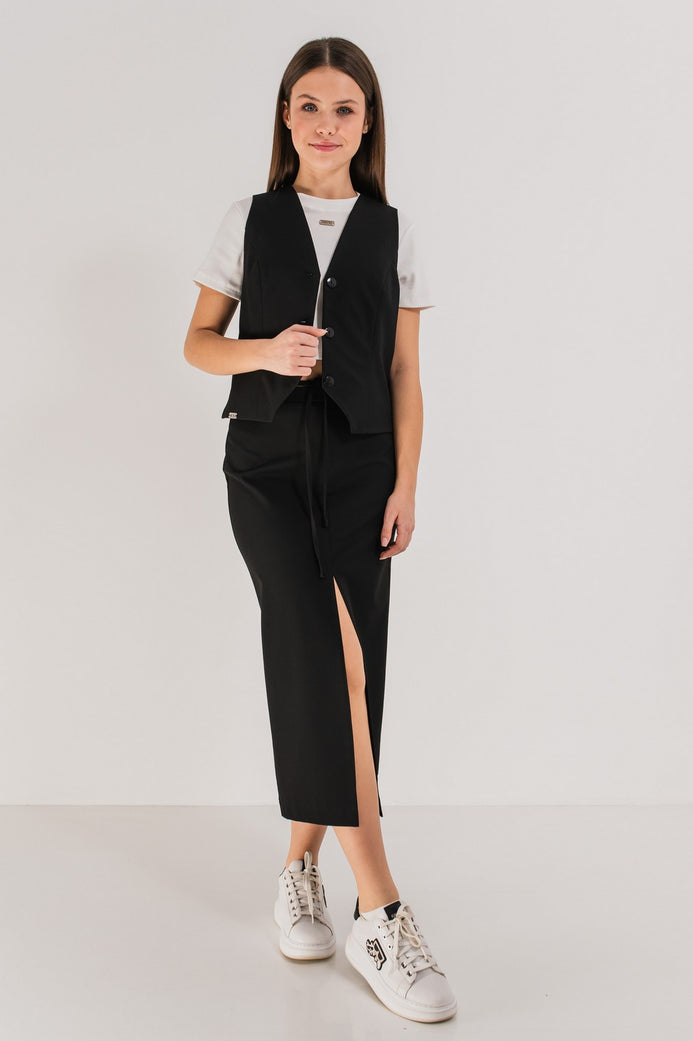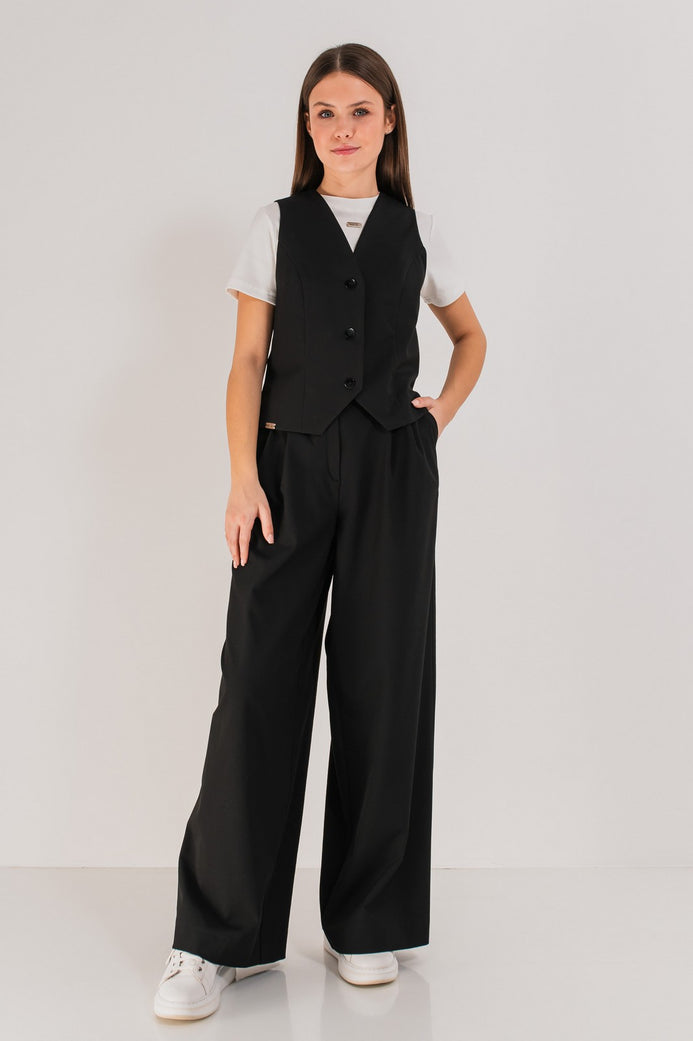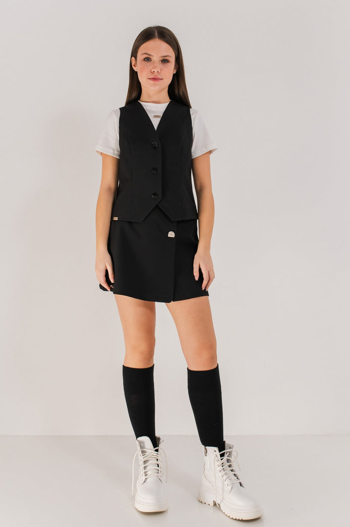 YASMINA - Vesta din stofa cu model clasic pentru uniforma scolara de fete, negru