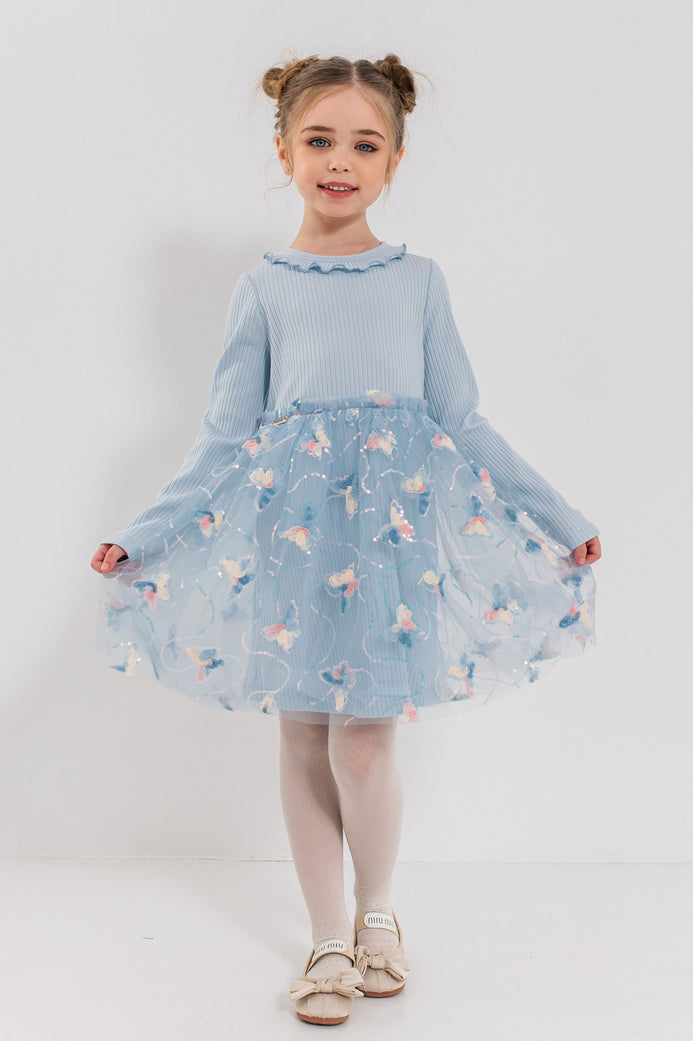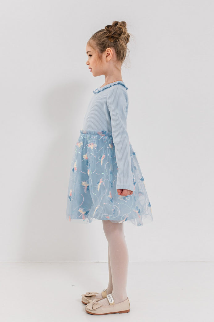 ZHUZHANNA - Rochita eleganta din bumbac cu tulle brodat si fluturasi, bleu