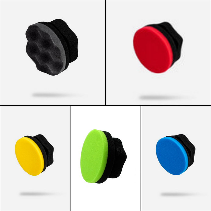 Avantajul acestor bureti este precizia cu care puteti aplica ceara sau produsele preferate pe suprafete vopsite: metal, sticla, plastic, etc. Este ideal pentru finisarea perfecta a suprafetelor auto, asigurand un aspect impecabil si stralucire durabila. Pachetul contine 5 bureti cu maner ergonomic. Buretii colorati se diferentiaza prin gradul de abraziune, dupa cum urmeaza: