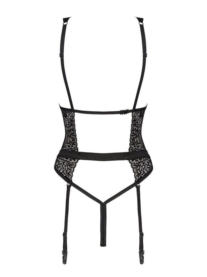 Body Yaskana - lenjerie erotică din dantelă cu portjartier și decupaje provocatoare XL/XXL, negru
