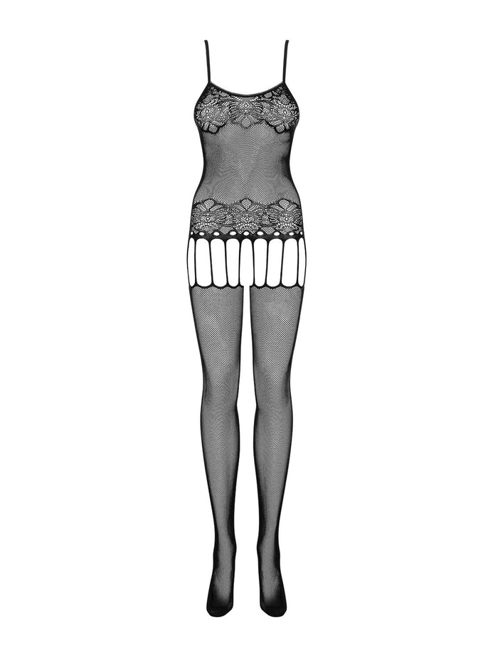 Bodystocking Obsessive F235 - catsuit provocator din plasă cu decupaje și model sexy S-L (one size), negru