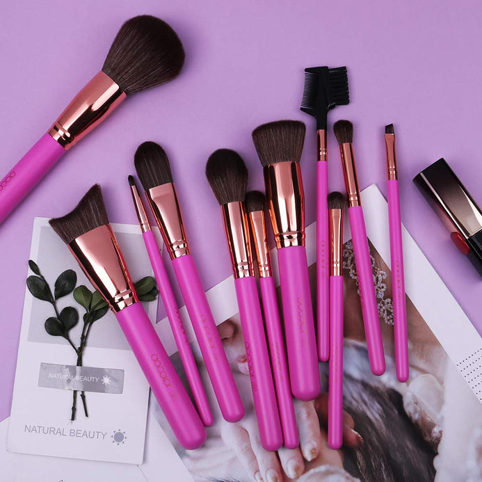 Setul Beauty Essentials Makeup cuprinde 11 pensule pentru machiaj care adauga un plus de culoare in colectia ta de accesorii. Este un kit deosebit de versatil, cu design elegant. Sunt pensule cruelty-free pentru fata, ochi si buze, realizate din fibre sintetice. Finisajele de inalta calitate cuprind inele de prindere din aluminiu auriu si manere fucsia. Fibrele moi, de calitate premium se potrivesc pentru texturile pudrate sau cremoase ale fardurilor si ofera posibilitatea unei aplicari profesionale a machiajului de zi cu zi. In interiorul setului, fiecare pensula este ambalata individual.