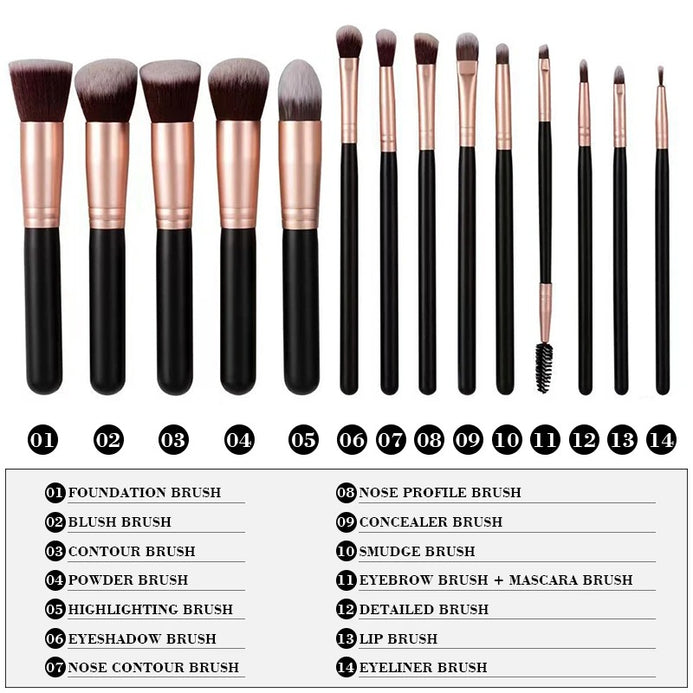 Descopera setul profesional de pensule pentru machiaj, un set de 14 pensule esentiale creat pentru a imbunatati si perfectiona rutina ta de frumusete.