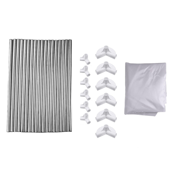 Continut pachet: 18 bare/cadru, 6 prinderi/colturi superioare mici, 6 prinderi/colturi de baza mari, tarc textil, 2 inele de sustinere cu manere de prindere colorate