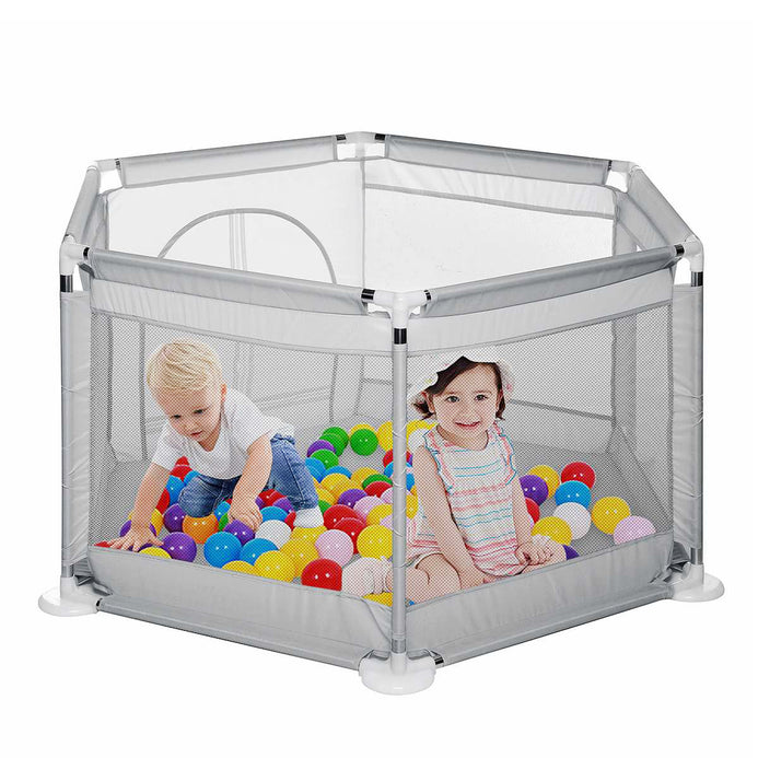 Tarc de joaca pentru copii, centru de activitati cu plasa de protectie si usa cu fermoar, 128x113x65cm, gri