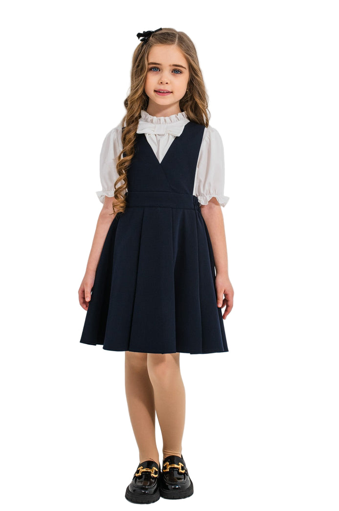 ADELAIDE – Sarafan din stofa cu decolteu in V si clos amplu, ideal pentru uniforma scolara, bleumarin