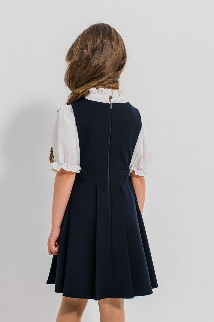 Sarafan cu model uni din stofa bleumarin si captuseala din bumbac, perfect pentru uniforme de scoala.