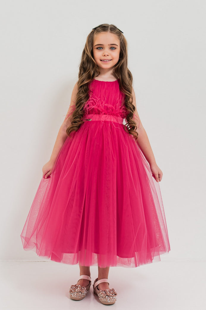 Tulle fin, detalii drapate și un accesoriu elegant în talie – rochia Jasmin este alegerea perfectă pentru micile domnișoare care doresc să strălucească la fiecare eveniment! Un model diafan, realizat cu grijă din materiale premium care oferă confort și rafinament. Rochia este semi-cambrată și are croială amplă, în cloș, cu lungimea fustei până deasupra gleznelor. Corsetul este decorat cu drapaje fine din tulle care adaugă un plus de rafinament ținutei. Linia taliei este accentuată de o bandă din satin cu pene decorative (detașabilă), completată de o fundă care evidențiază frumos silueta. Fusta compusă din cinci straturi de tulle, oferă volum spectaculos iar stratul de saten oferă un plus de strălucire și o notă festivă.