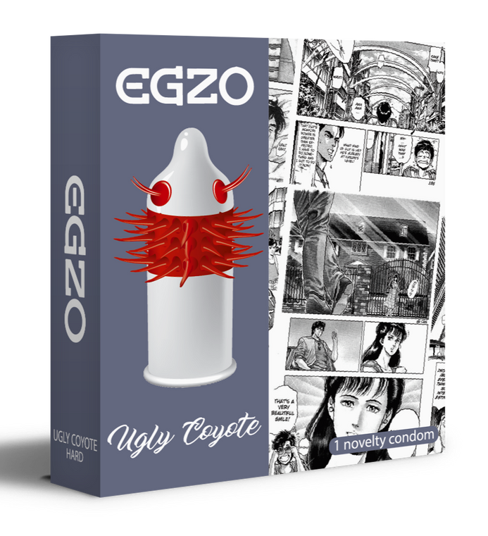 Prezervativ Egzo Hot Red cu proeminente pentru stimulare si placere intensa Prezervativ Egzo Ugly Coyote cu proeminente pentru stimulare si placere intensa Prezervativ Egzo Uncle Bob cu proeminente pentru stimulare si placere intensa