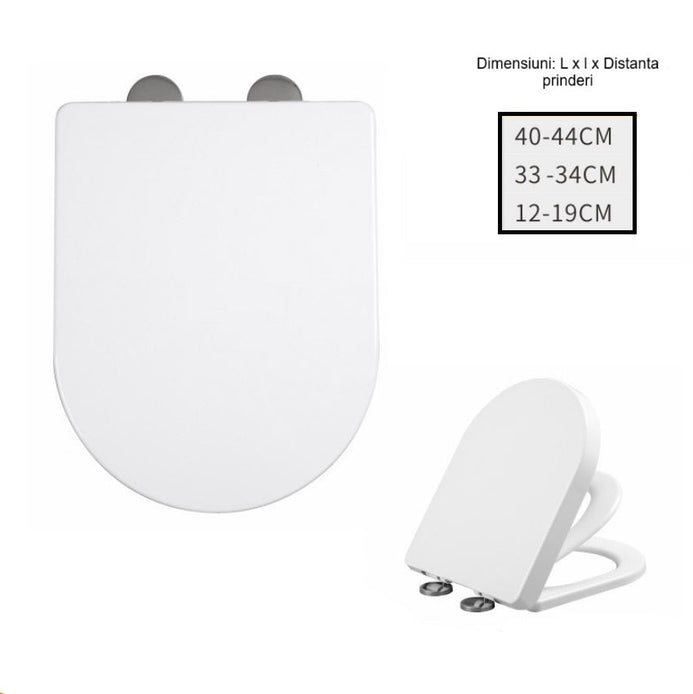 Sistemul Easy-Close este o inventie ingenioasa: cu doar o usoara impingere, capacul de toaleta se va rabata singur, fara niciun zgomot. Fabricat din plastic durabil si rezistent, acest capac de WC este construit sa reziste. Materialul nu se ingalbeneste in timp, asigurand ca produsul va arata ca nou pentru o perioada indelungata. Cu un sistem de prindere foarte ajustabil, acest capac este potrivit pentru o multitudine de dimensiuni de vase de toaleta (forma U)