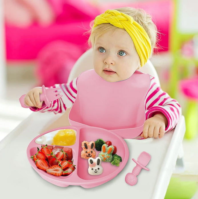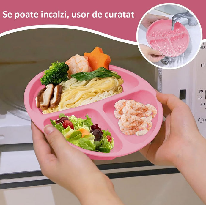 Transformati mesele copilului dumneavoastra intr-o experienta placuta si sigura cu setul de vesela din silicon pentru bebelusi! Creat special pentru nevoile celor mici, acest set de vesela ofera siguranta, functionalitate si design atractiv.