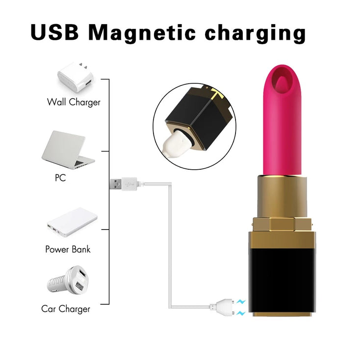 Mini vibrator in forma de ruj Vibe Lipstick cu 10 moduri de vibratii si incarcare USB, silentios, rezistent la apa, silicon premium