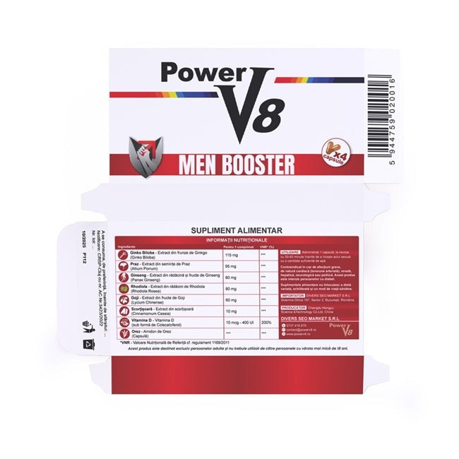 - Produsul Power V8 este un supliment natural avizat de Centrul Regional de Sanatate Publica.