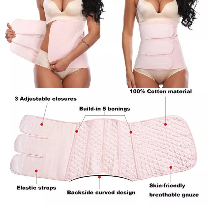 Centura abdominala postnatala din bumbac, corset ajustabil si modelator ideal pentru recuperare dupa nastere, cezariana, operatii - roz