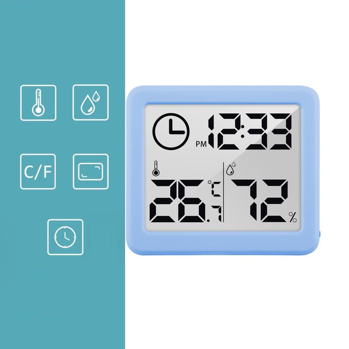 Higrometru si termometru digital de camera cu ceas, bleu