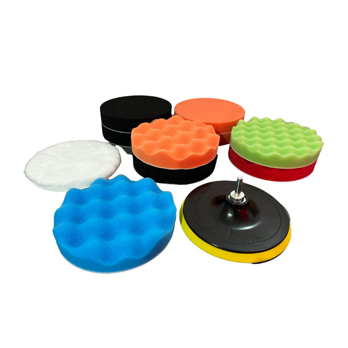 Set 12 piese polish auto profesional cu taler M14, discuri de burete 15 cm, lana si adaptor pentru bormasina