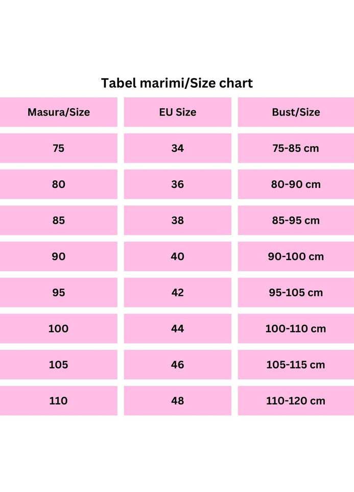 Rugam atentie sporita la alegerea marimii! Consultati tabelul de marimi. Fiind un articol de lenjerie intima NU poate fi schimbat sau returnat. In acest mod intarim garantia ca nu se cumpara un produs probat anterior de altcineva.