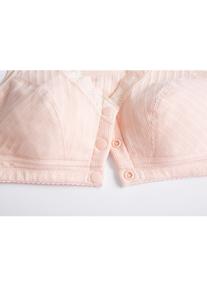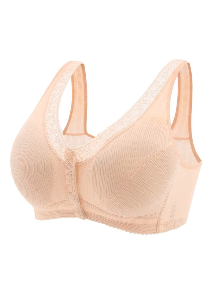 Sutien alaptare confortabil din bumbac si cupe captusite, deschidere frontala cu capse, fara armatura, bej