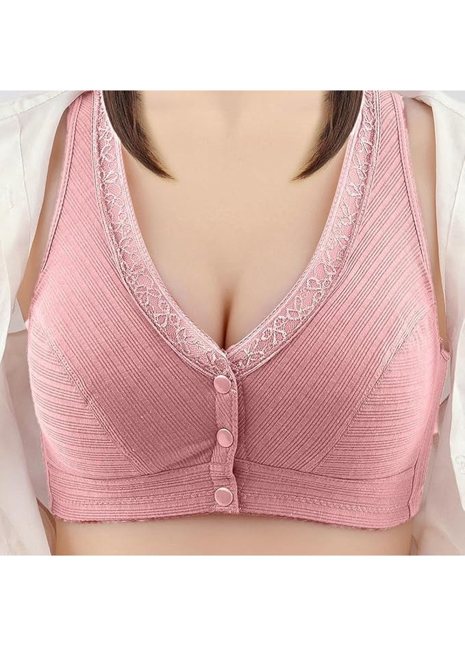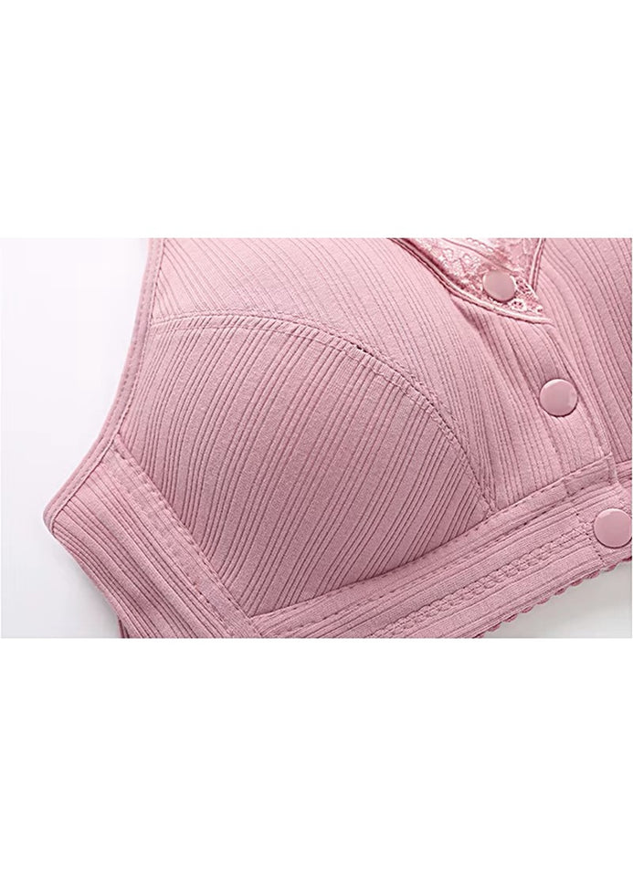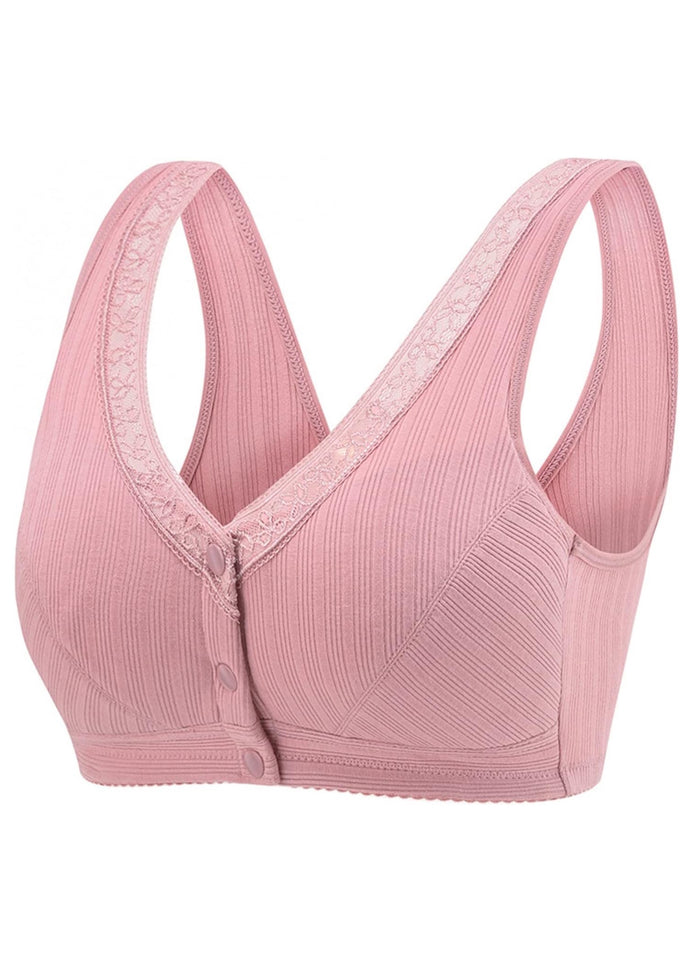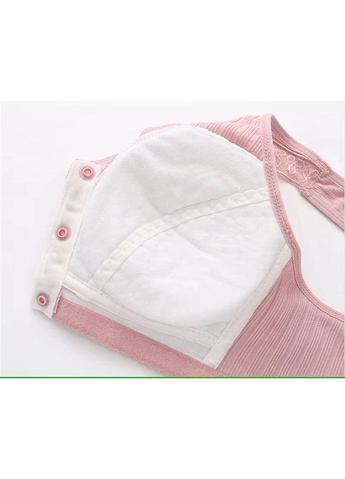 Sutien alaptare confortabil din bumbac si cupe captusite, deschidere frontala cu capse, fara armatura, roz