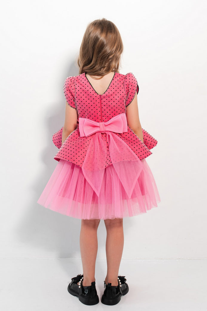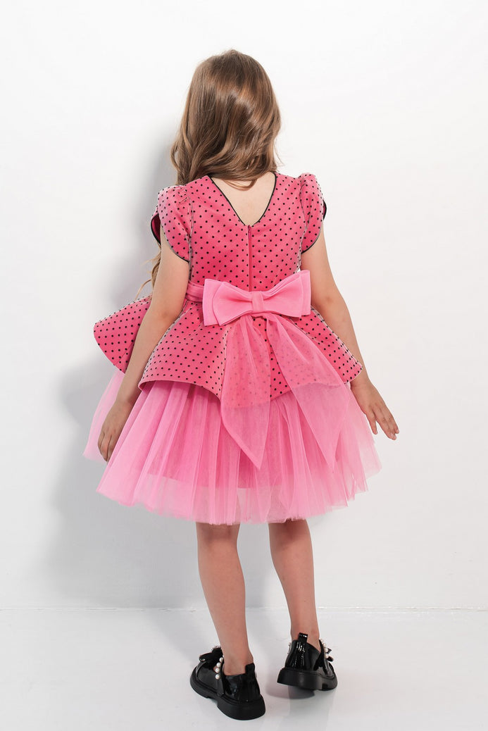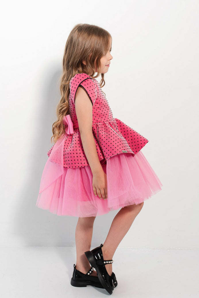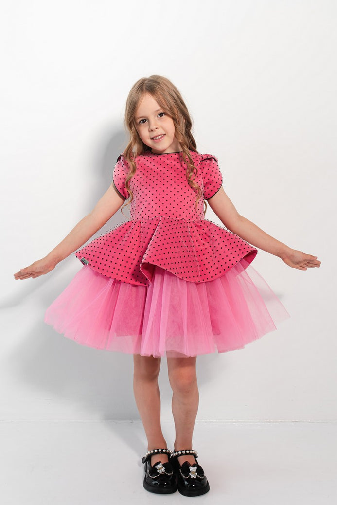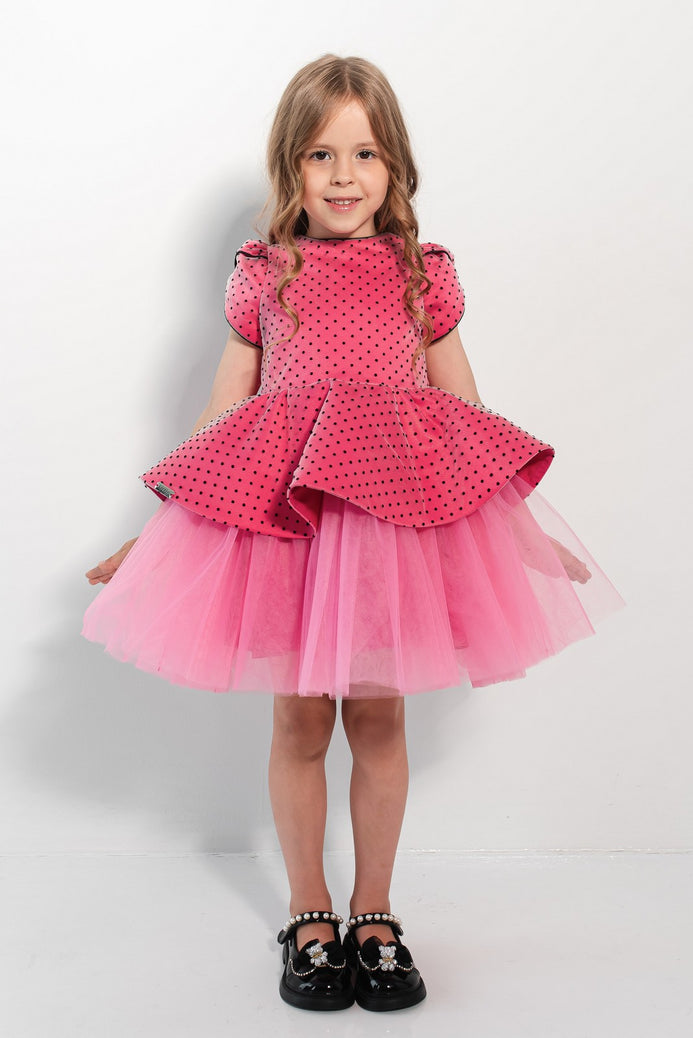 Tulle diafan, catifea elegantă și buline jucăușe – o rochiță de poveste pentru evenimente speciale! Întâmpină magia momentelor unice cu rochia Veronica, creată pentru fetițele care iubesc să strălucească. Această rochie combină stilul elegant cu o notă jucăușă datorită modelului cu buline contrastante. Partea superioară este realizată din catifea fină iar fusta amplă din tulle, în straturi, creează un efect de volum grațios.