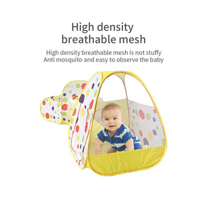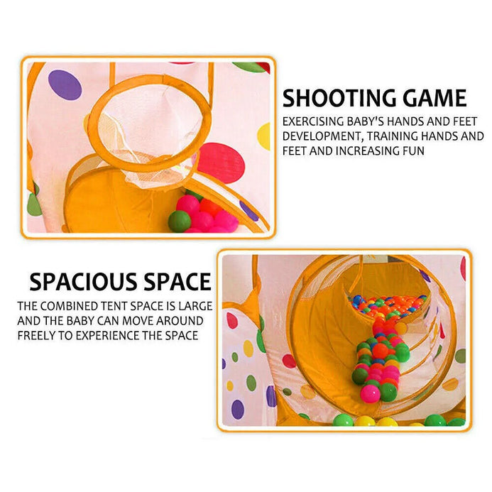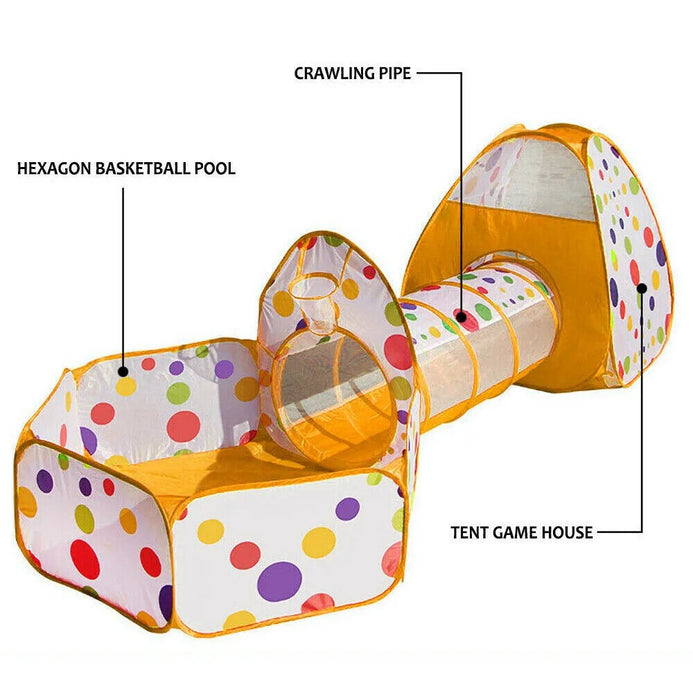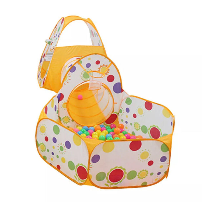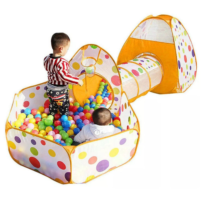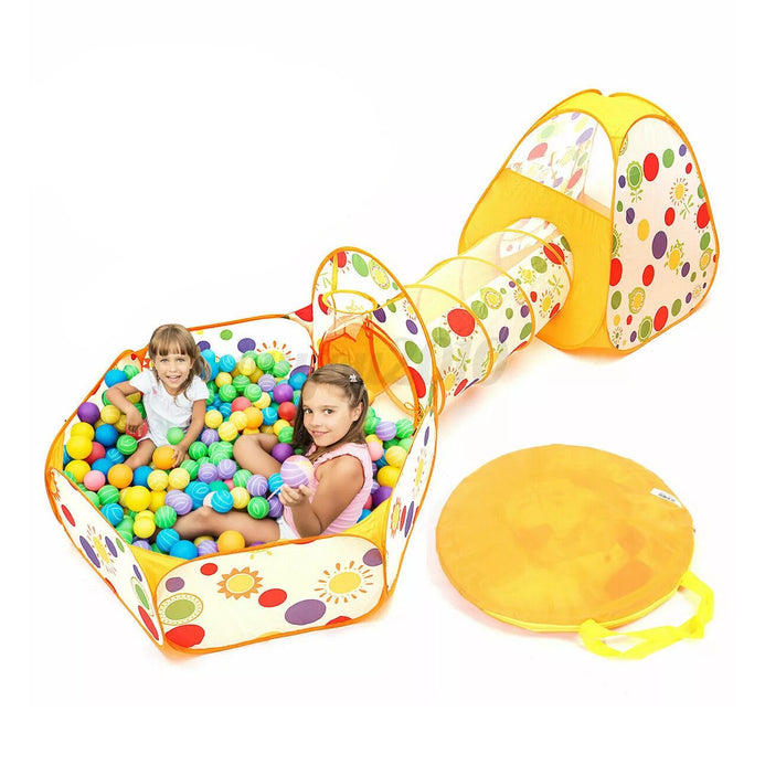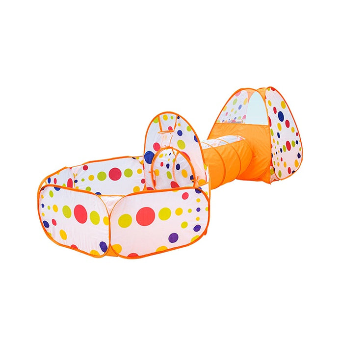 - Set complet 3-in-1: include un tunel, un cort/casuta de joaca si o piscina/tarc cu bile - toate proiectate pentru a putea fi utilizate impreuna sau separat.