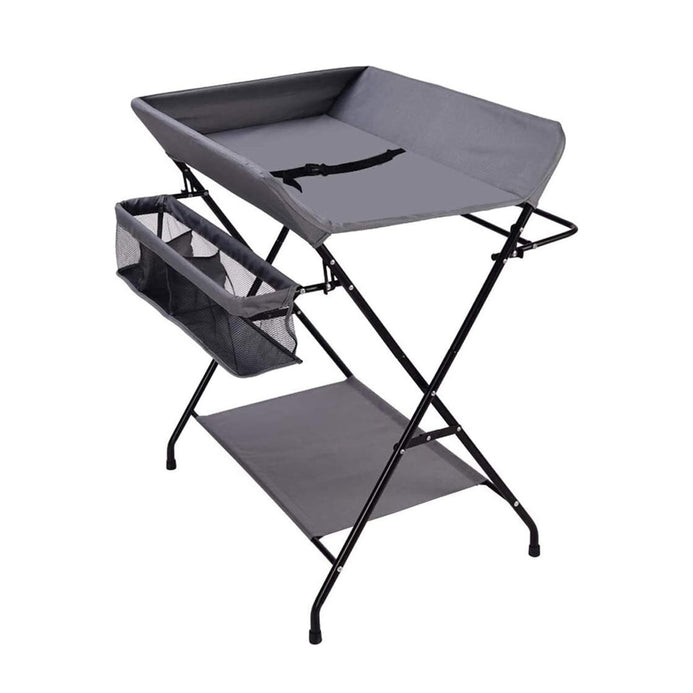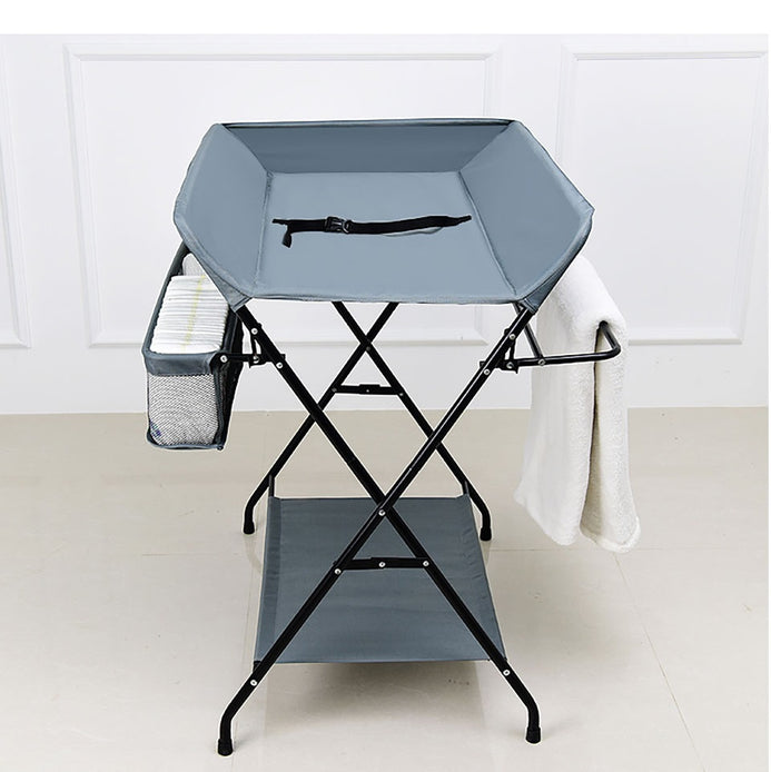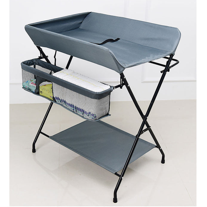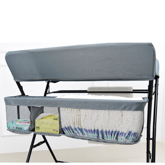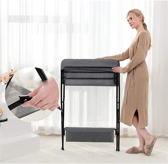 Masa de infasat pliabila multifunctionala cu organizator, raft depozitare si protectii laterale SOLLUXE®, cadru metalic, tesatura gri
