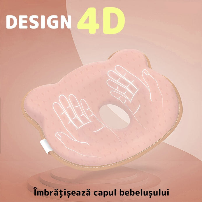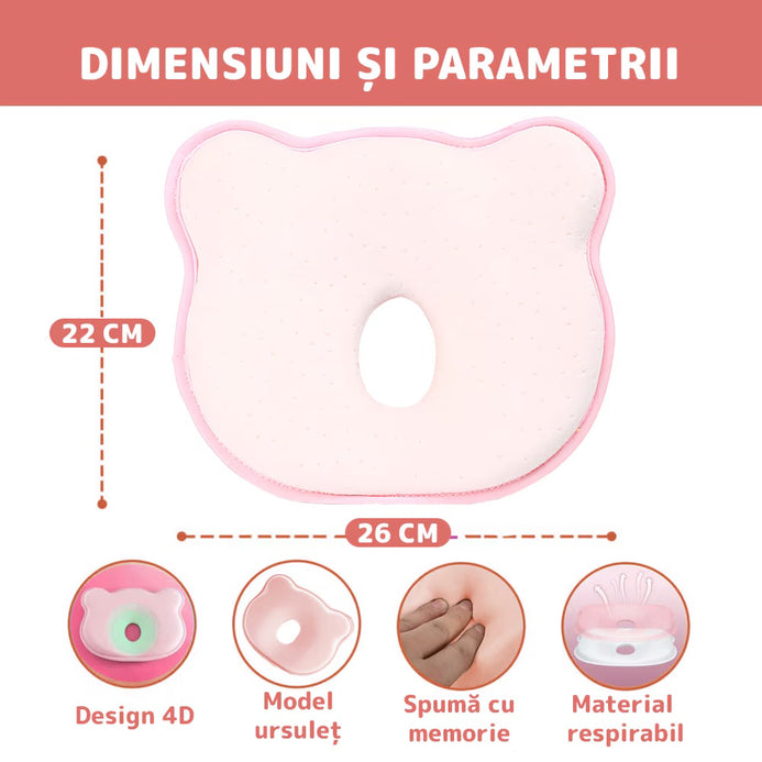 Perna pentru bebelusi din bumbac cu memorie, protectie anti plagiocefalie pentru formarea capului, Roz