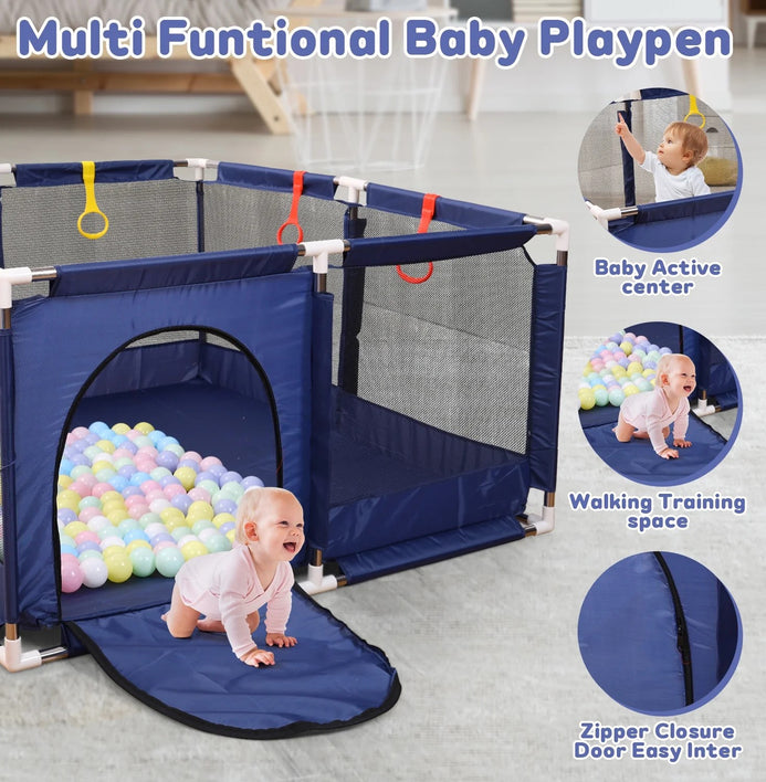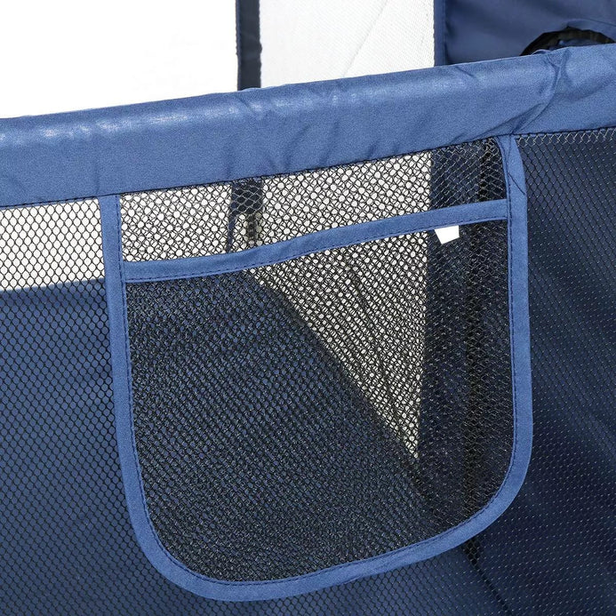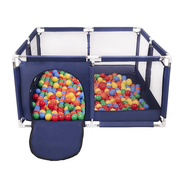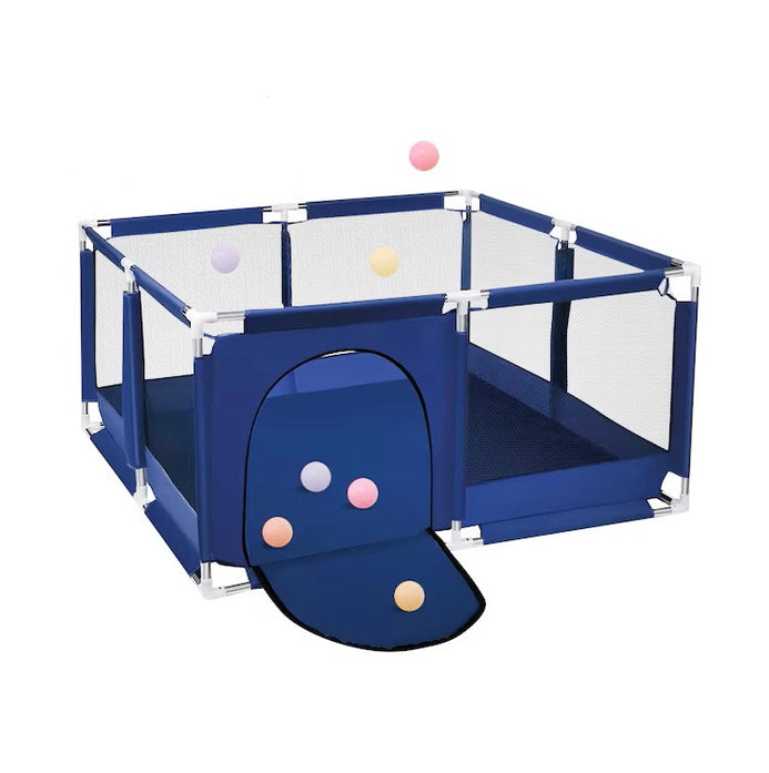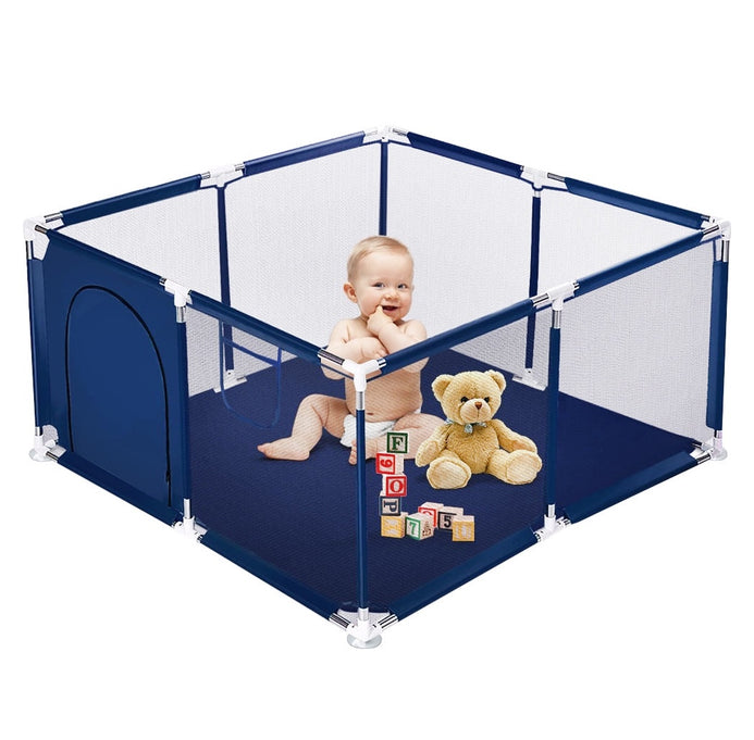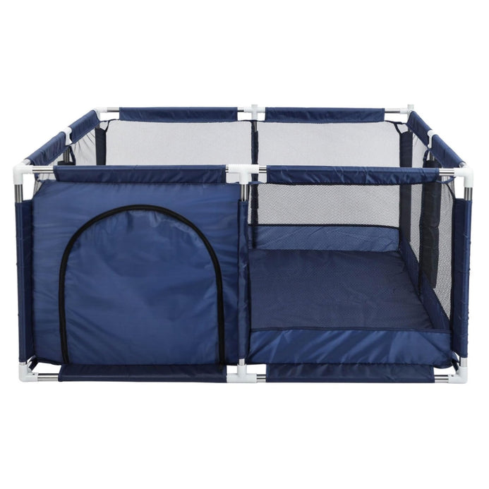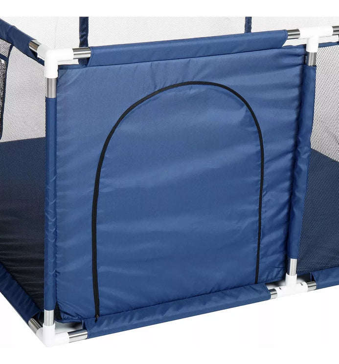 Tarc de joaca pentru copii, centru de activitati cu plasa de protectie si usa cu fermoar, 120x120cm, albastru