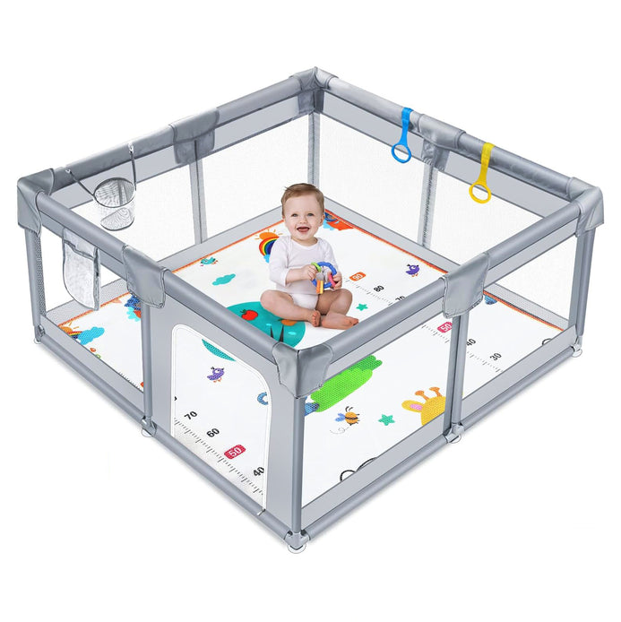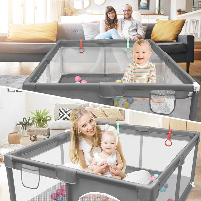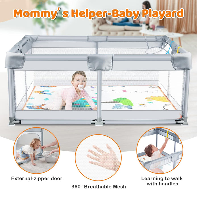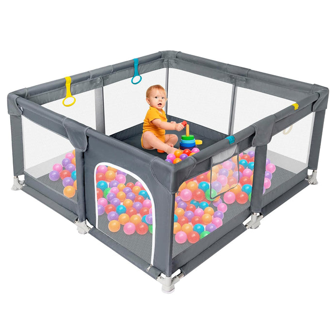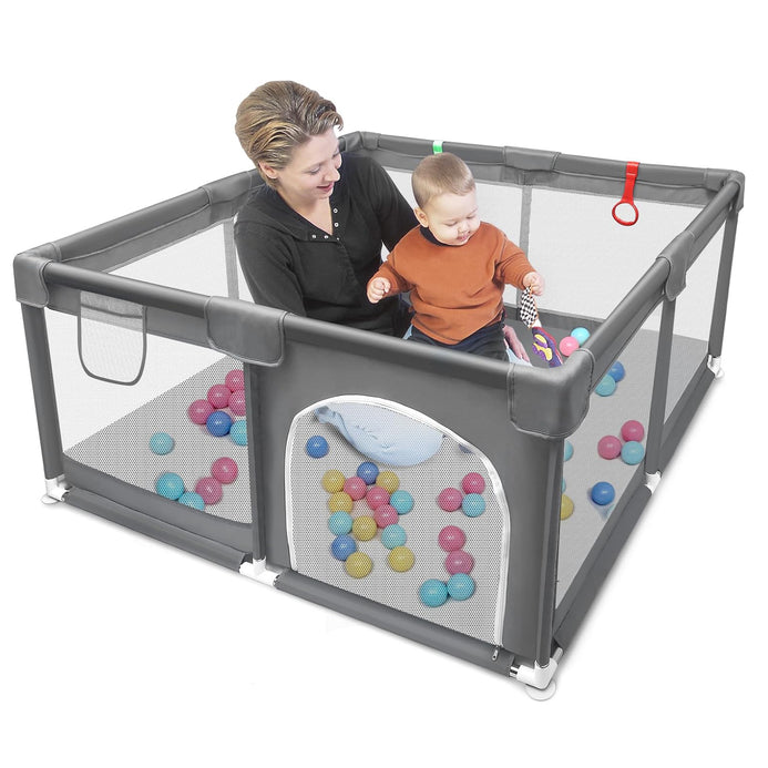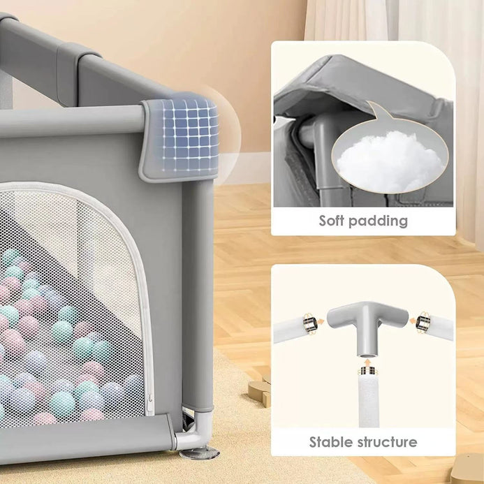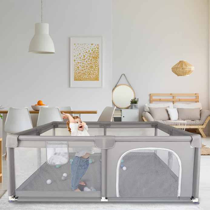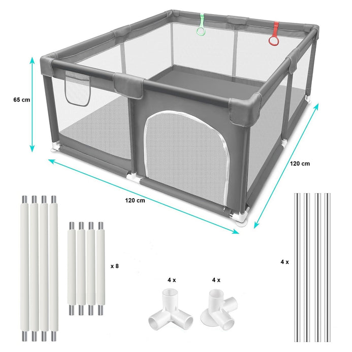 Tarc de joaca pentru copii, centru de activitati cu plasa de protectie si usa cu fermoar, 120x120cm, gri