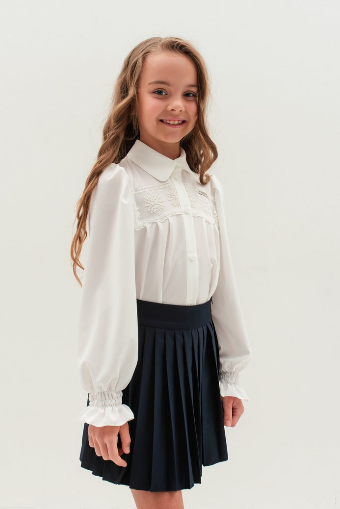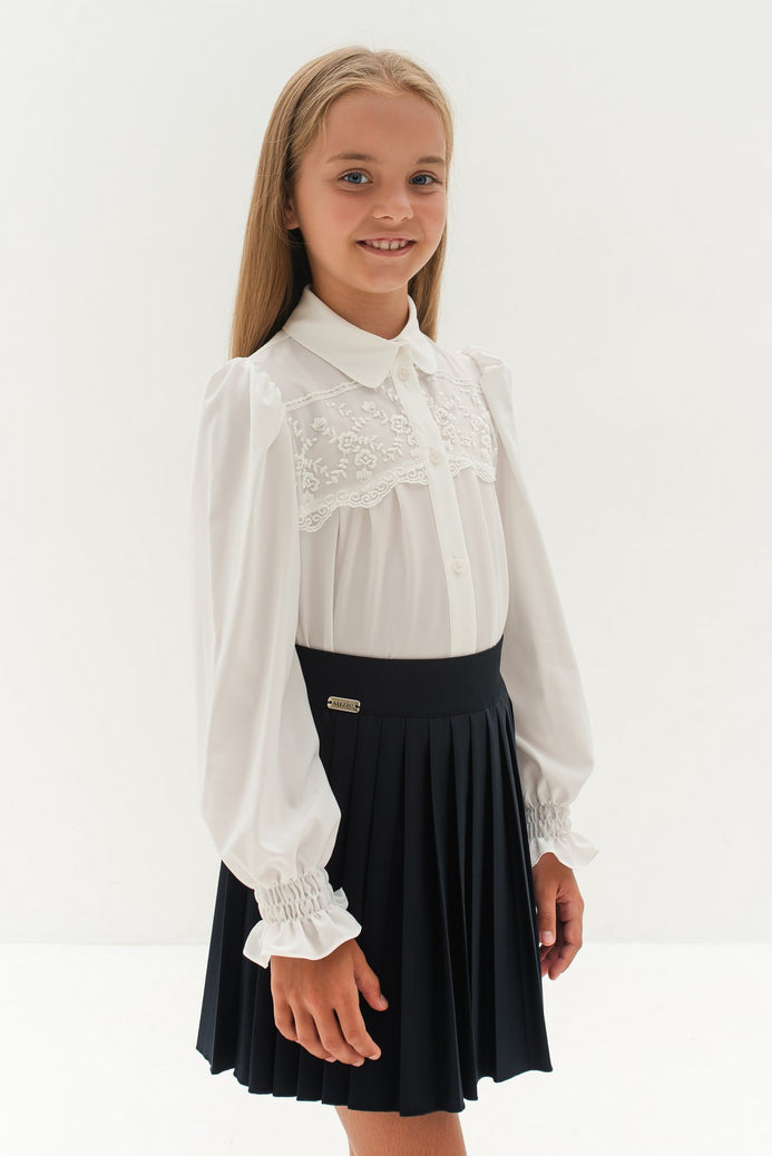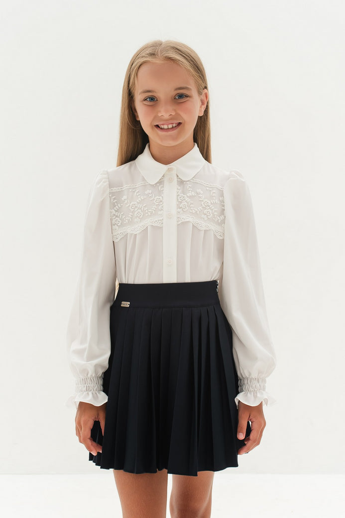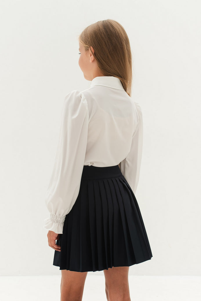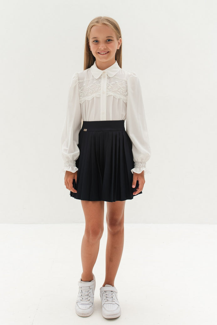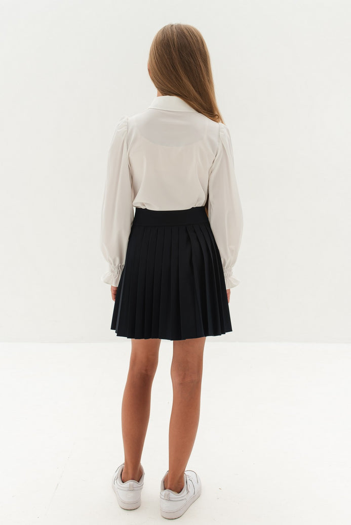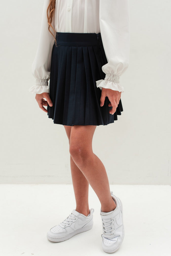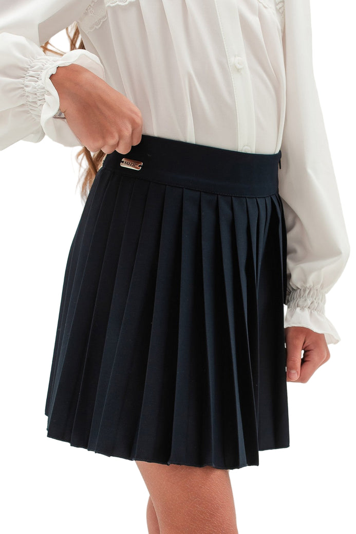 Fusta scurta cu pliuri clasice din stofa bleumarin este un model care nu lipsește din garderoba fetitelor, fiind alegerea perfecta pentru uniforme scolare.