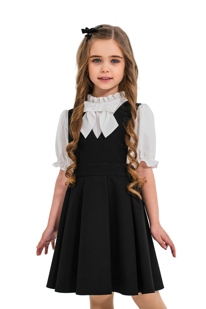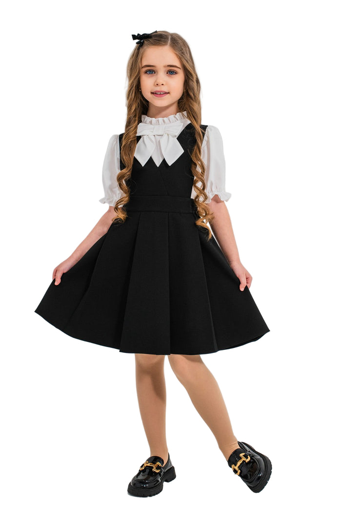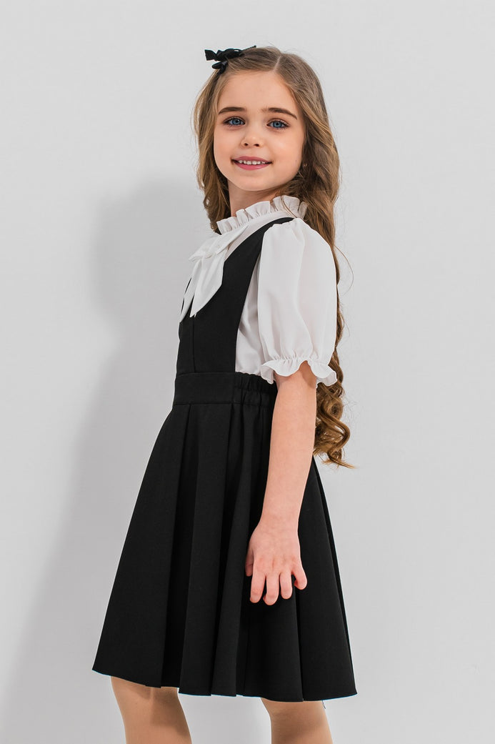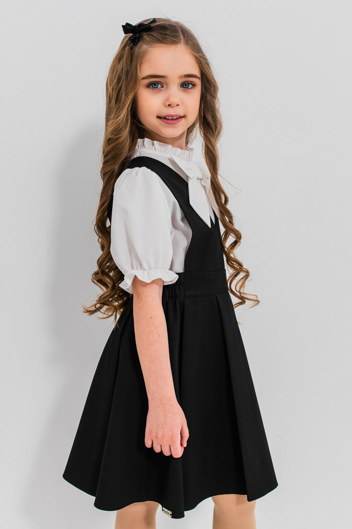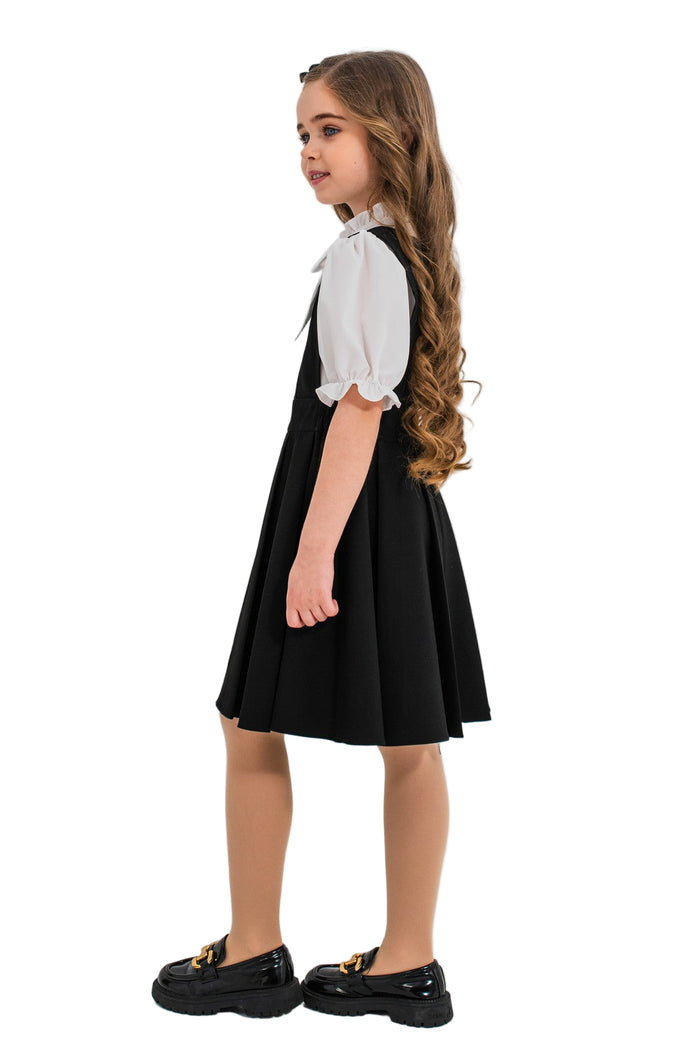 Sarafan cu model uni din stofa neagra si captuseala din bumbac, perfect pentru uniforme de scoala.