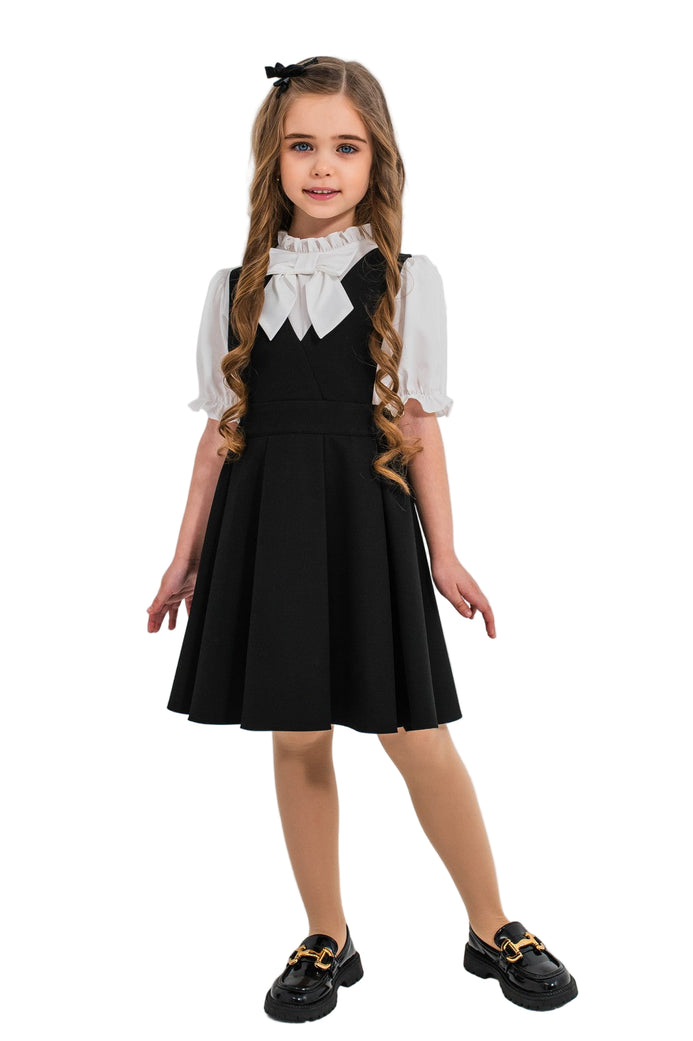ADELAIDE – Sarafan din stofa cu decolteu in V si clos amplu, ideal pentru uniforma scolara, negru