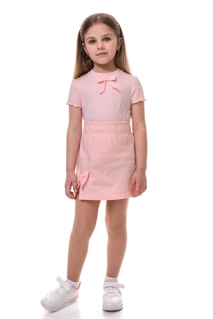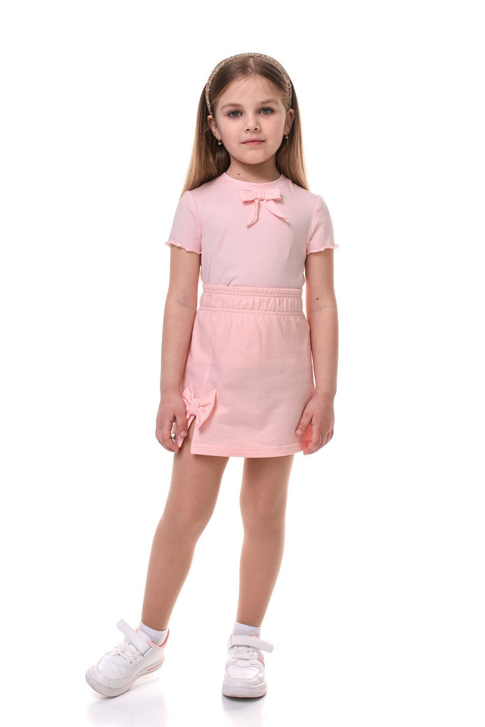 Tricou cu maneca scurta pentru fetite, din bumbac fin cu fundita delicata si croiala confortabila, perfect pentru tinutele de zi cu zi.