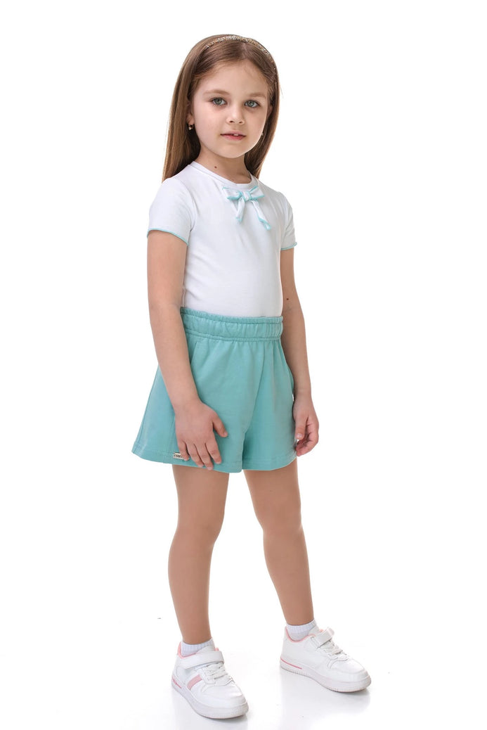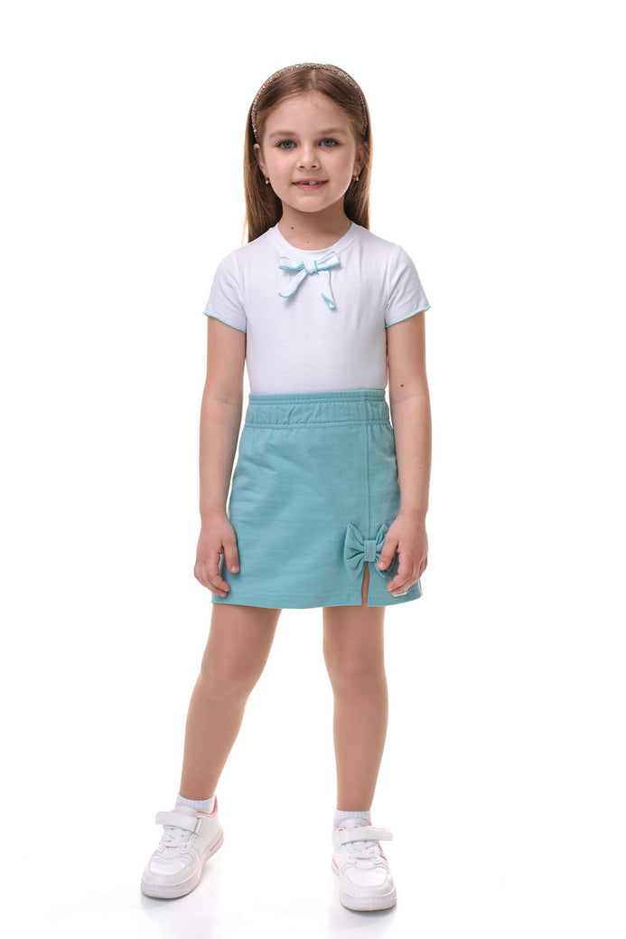 Tricou cu maneca scurta pentru fetite, din bumbac fin cu fundita delicata si croiala confortabila, perfect pentru tinutele de zi cu zi.