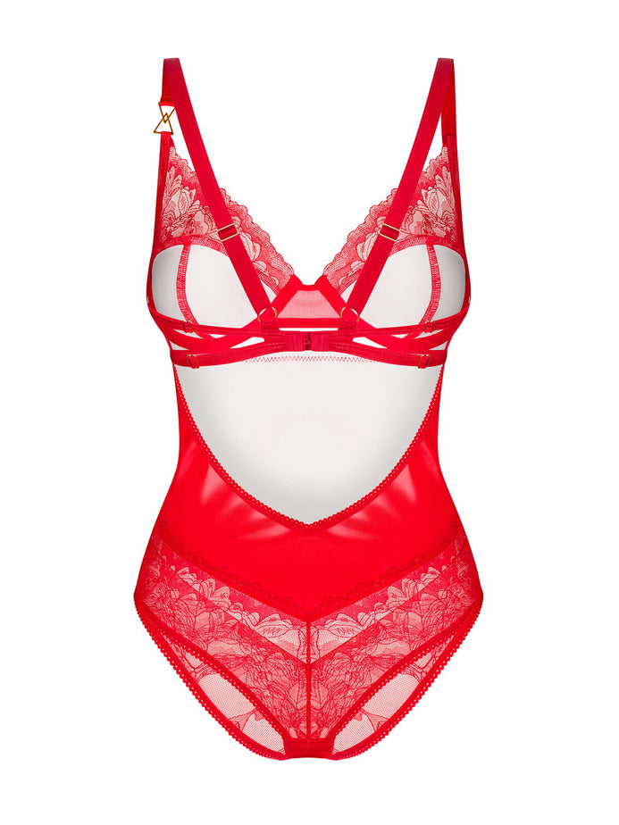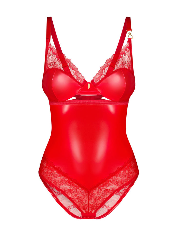 Body Aliosa - lenjerie erotică din vinil și dantelă cu decupaje sexy, roșu