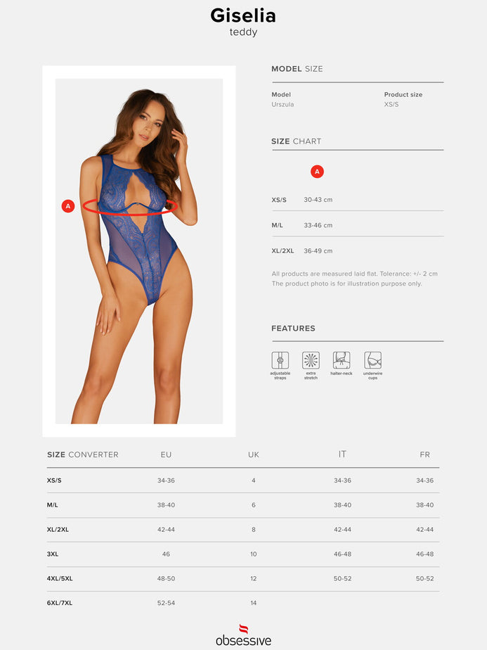 Body Giselia – lenjerie erotică din dantelă fină și decupaje seducătoare, albastru