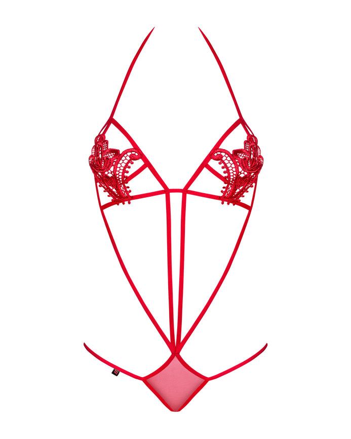 Body Luiza Teddy – lenjerie erotica sexy din dantelă cu decupaje provocatare S/M, rosu