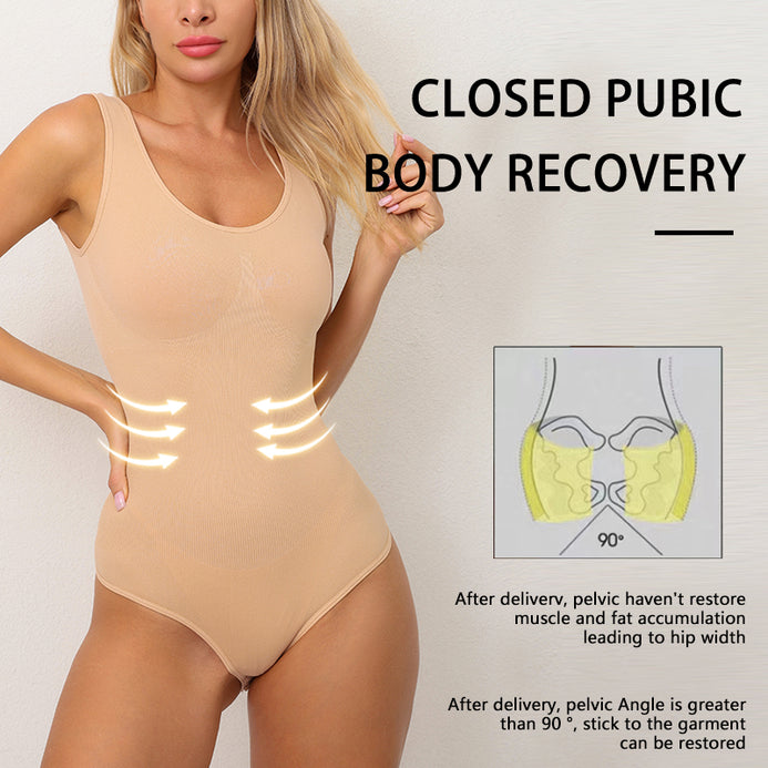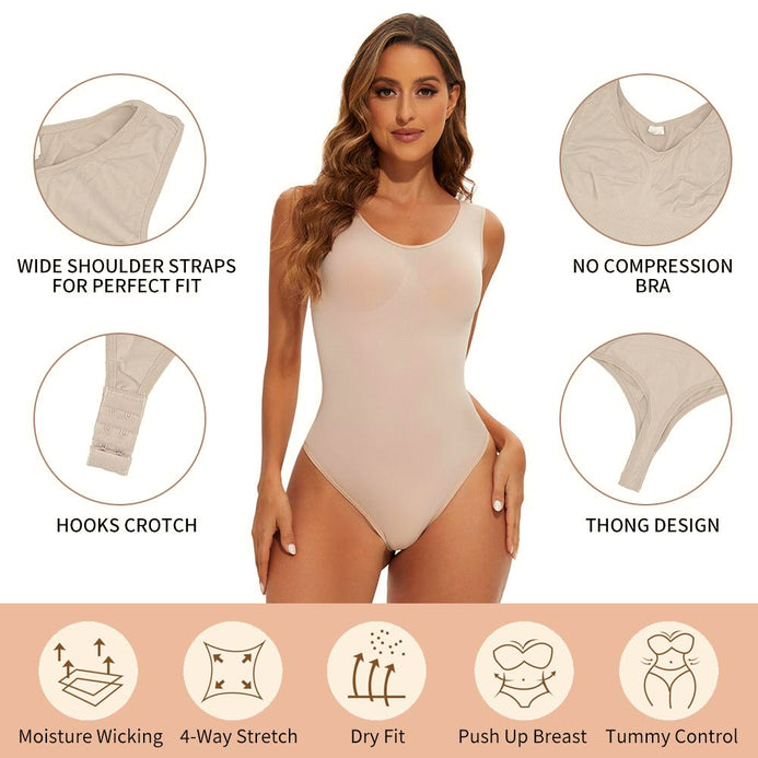 Body modelator cu compresie abdomen si efect de lifting la bust, lenjerie modelatoare fara cusaturi, din material respirabil, usor de imbracat - bej