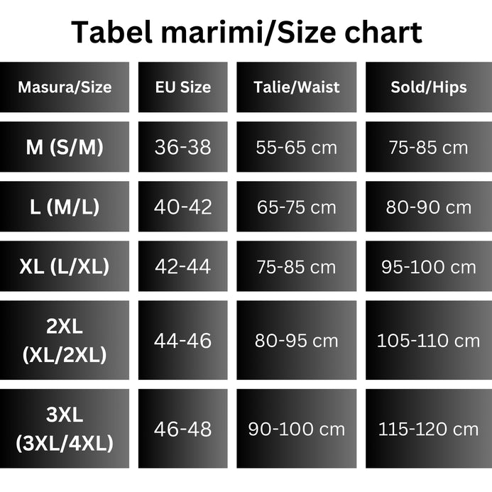 Rugam atentie sporita la alegerea marimii! Consultati tabelul de marimi. Fiind un articol de lenjerie intima NU poate fi schimbat sau returnat. In acest mod intarim garantia ca nu se cumpara un produs probat anterior de altcineva.