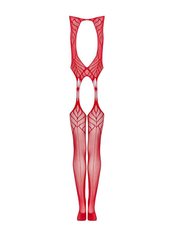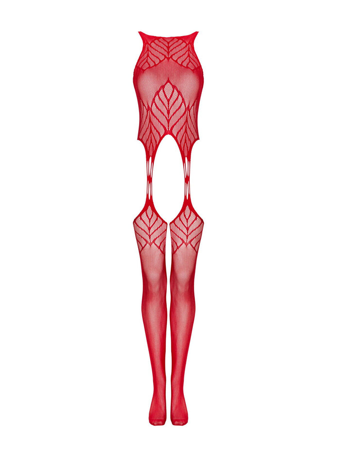 Bodystocking Obsessive N122 - lenjerie erotică din plasă cu portjartier și decupaje XL/XXL, roșu